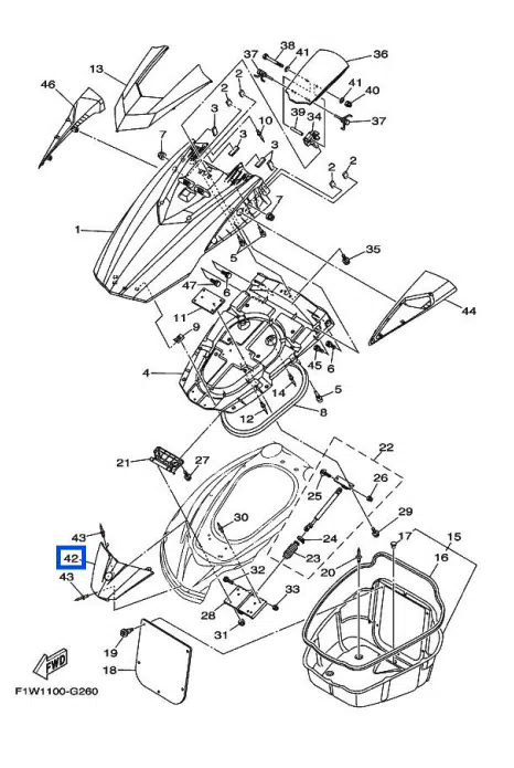 Cache avant gris foncé – Cover Front Yamaha FX Cruiser SHO 1800cc 2010-2011 référence F1W-U513M-40-P0, F1W-U513M-60-P5