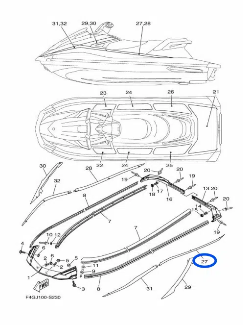 Le cache de finition arrière côté gauche (Ornament Stern LH) est une pièce de carénage d’origine Yamaha conçue pour habiller et protéger la partie arrière gauche de la coque sur plusieurs jet skis Yamaha VX et VXR.
