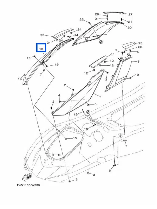 Déflecteur latéral gauche – Cover Side 1 Yamaha VX 1050-1800cc 2021-2025 référence F4N-U377B-00-P0