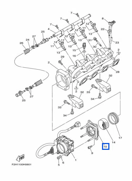 Entretoise de carter papillon – Spacer Yamaha 1800cc 2009-2012 référence 6BH-14360-00-00, 6BH-14360-02-00