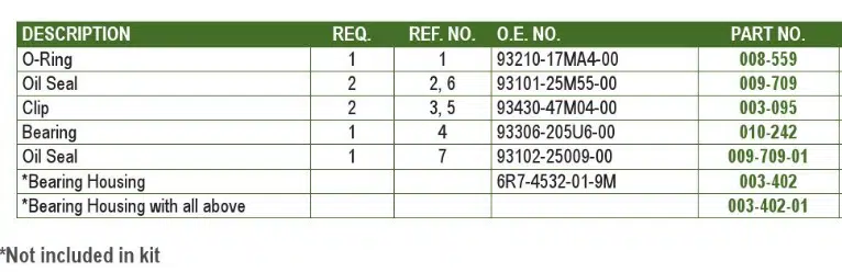 | Joint d’huile (Oil Seal) | 2 | 2, 6 | 93101-25M55-00 | 009-709 |