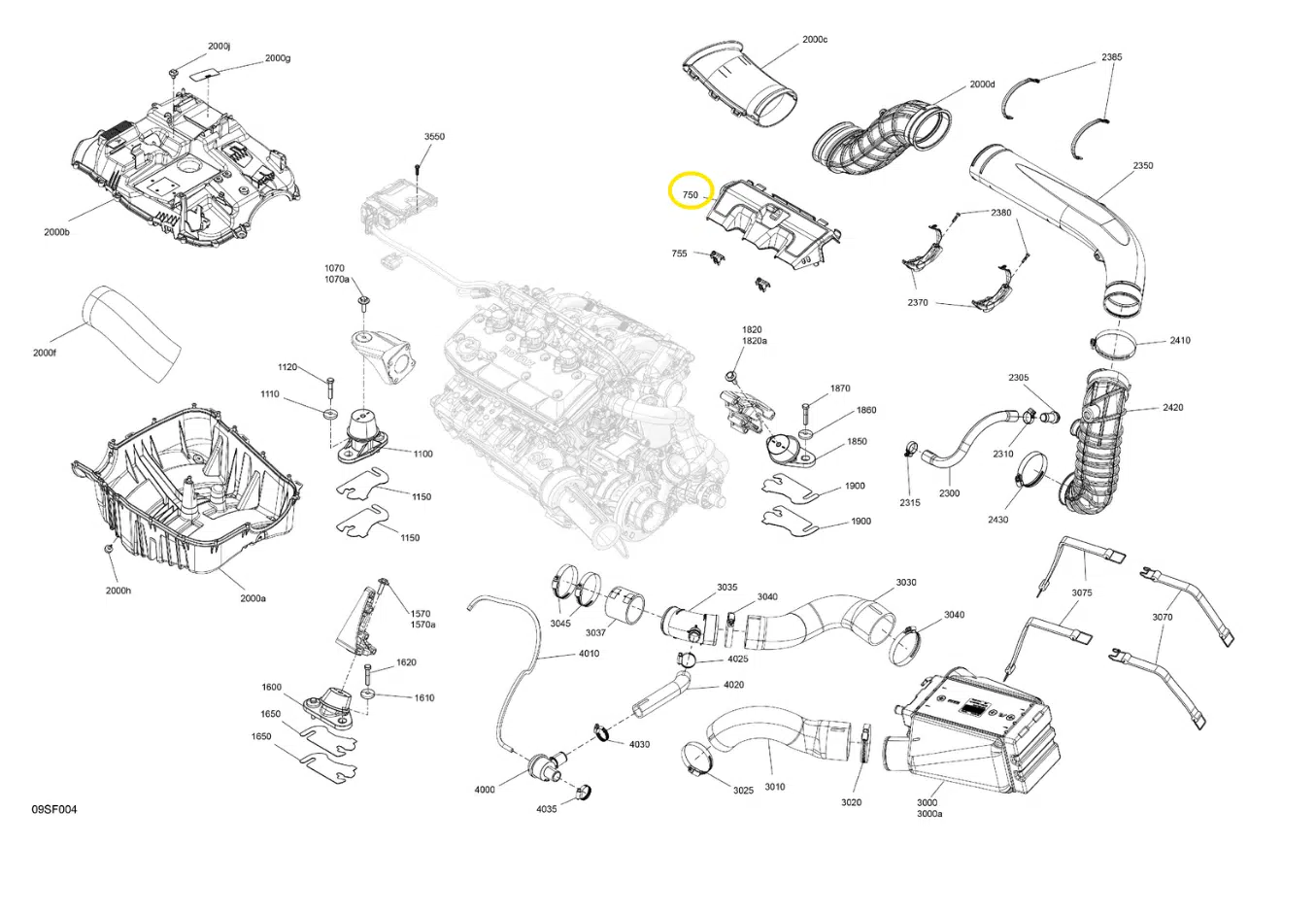 Couvercle moteur – Engine Cover Sea-Doo 1630 cc 325 CV 2024-2026 référence 270001130