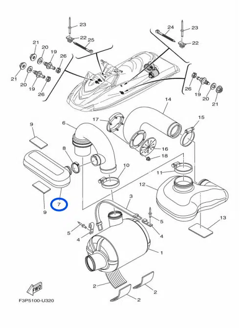Résonateur – Resonator 1 Yamaha 1800 cc 2012-2020 référence F2S-U753C-00-00