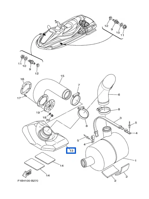 Résonateur – Water Tank Yamaha FX-GP 800-1300cc 2000-2008 référence F0X-64261-01-00, F0X-64261-02-00, F0X-U4261-10-00, F0X-U4261-12-00, F0X-U4261-13-00