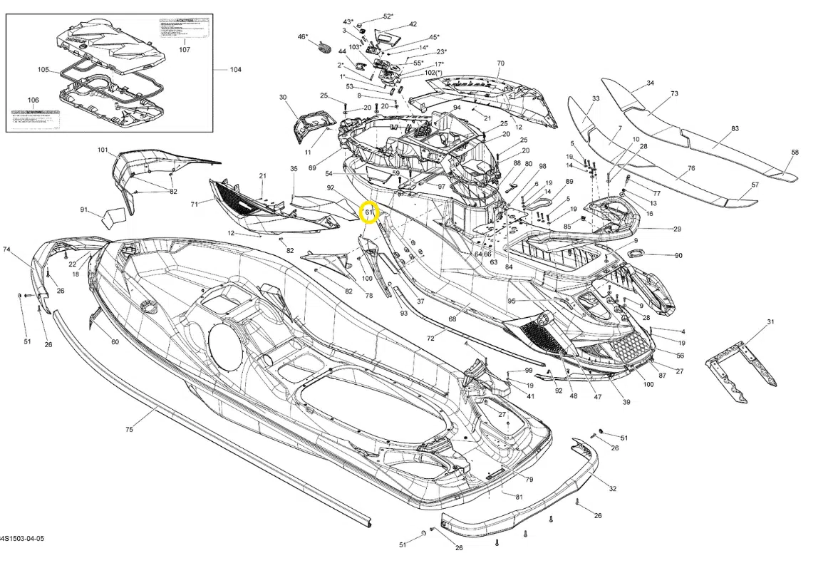 Intérieur de capot – Inner Engine Hatch Yamaha 1050-1800cc VX 2019-2020 référence F2X-U519G-10-00